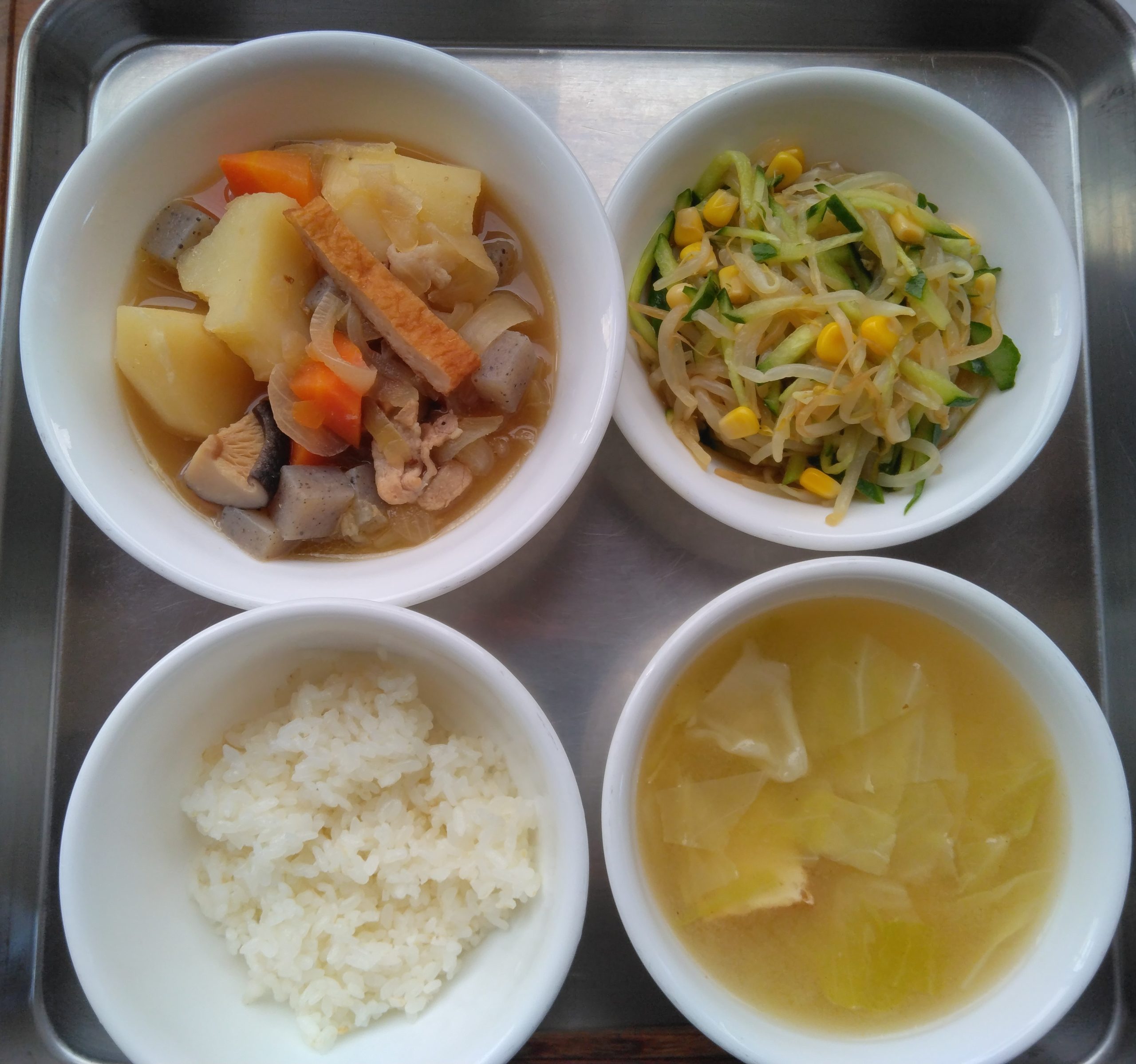 11月17日(月)の給食は、吉野煮とコーン・もやし・きゅうりの酢の物