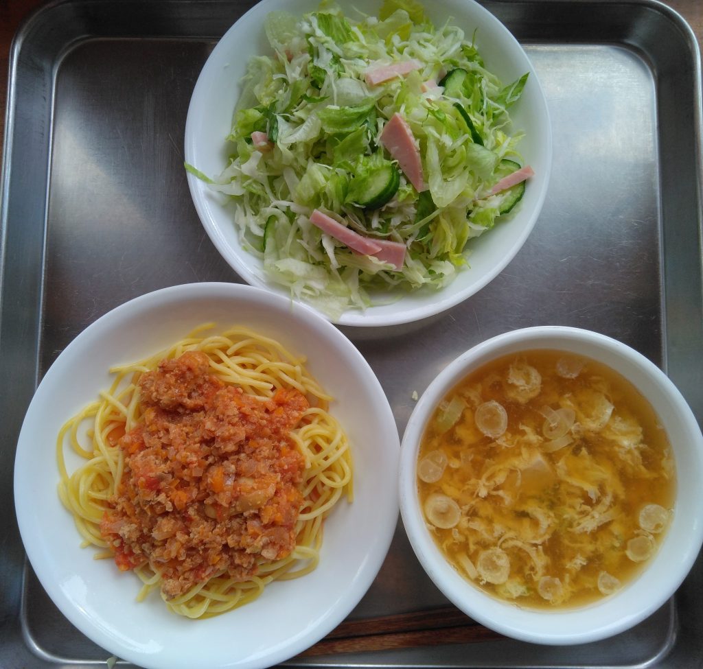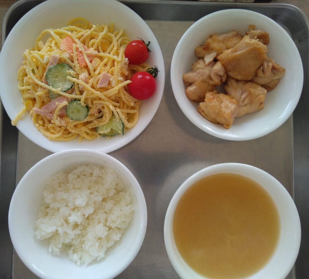 スパゲティサラダは人参、きゅうり、ツナ缶、コーン・・・と具だくさん👍