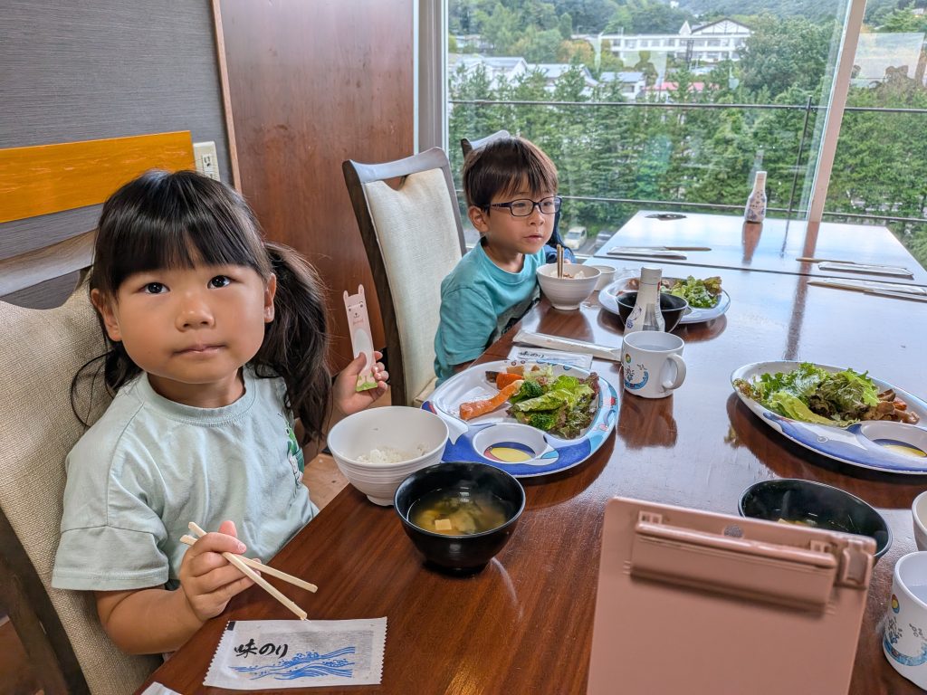 みんなでしっかり朝食を食べて、今日は山登りへ向かいます。