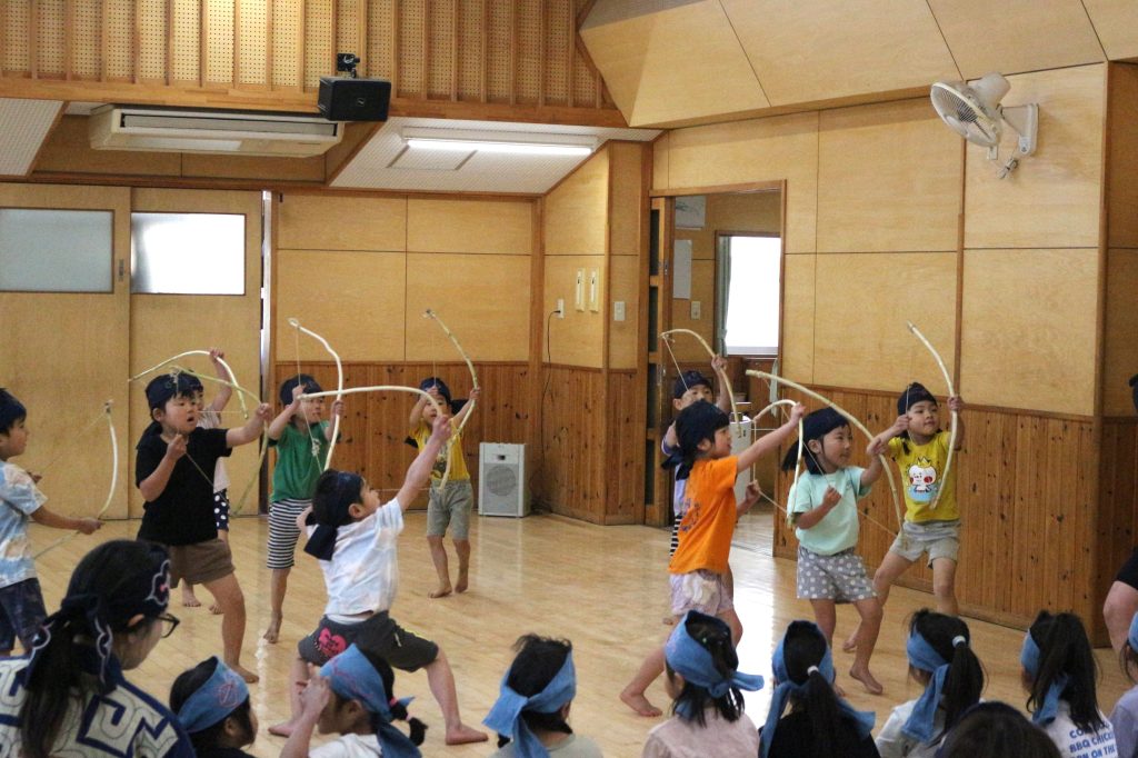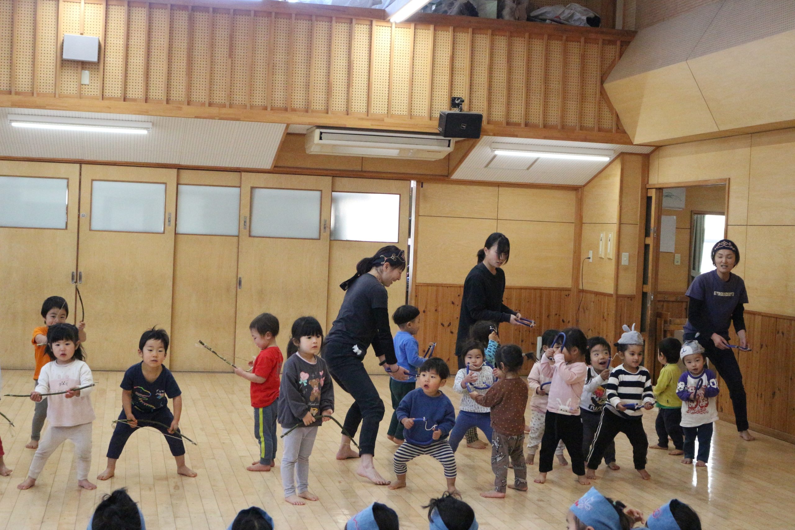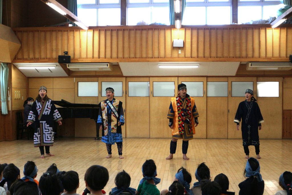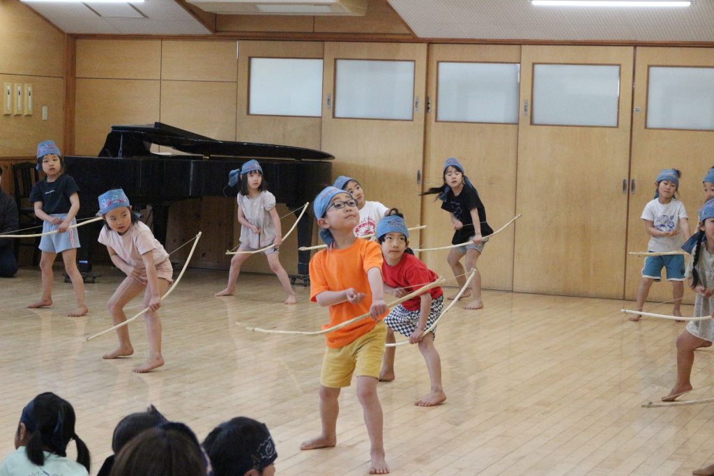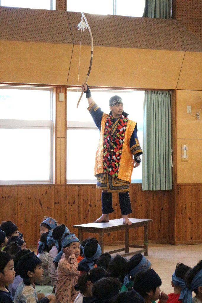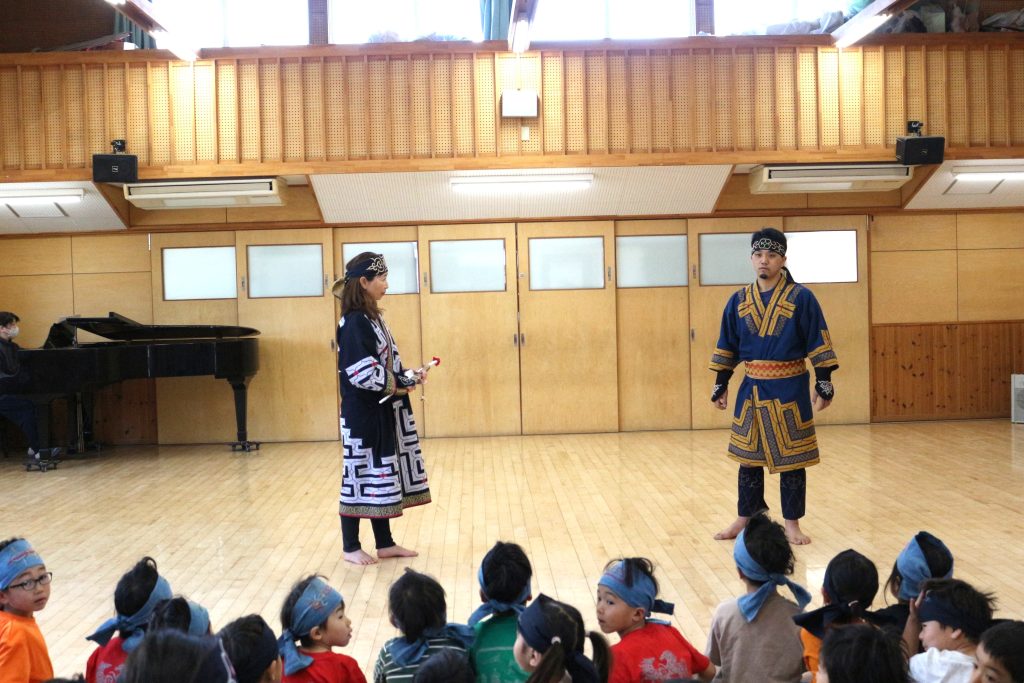オキクルミ会 今日はホールに0歳~5歳まで集まり、オキクルミ会をしました。 川鳥とオキクルミ アメマスごっこ オキクルミがアメマスと戦うところ 弓のおどり 子どもたちの弓のおどり オキクルミと姉 オキクルミと悪魔 今日はたくさん歌って踊って みんなでオキクルミ会を楽しみました(⌒∇⌒)