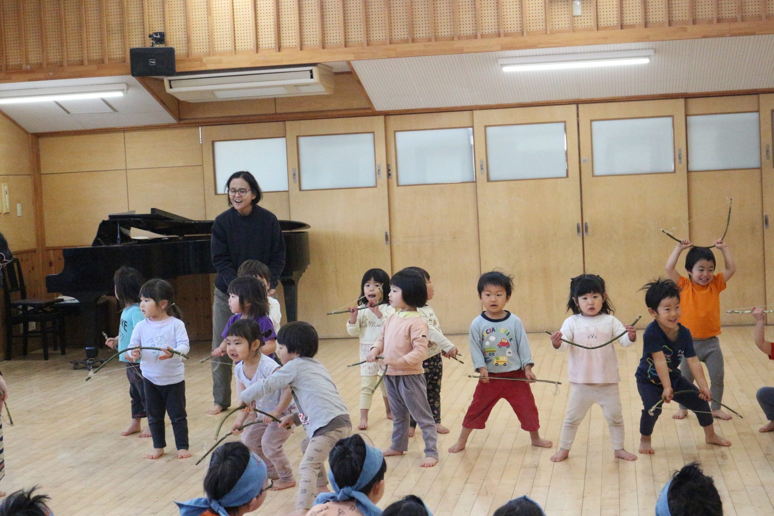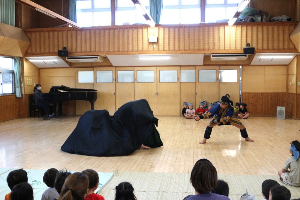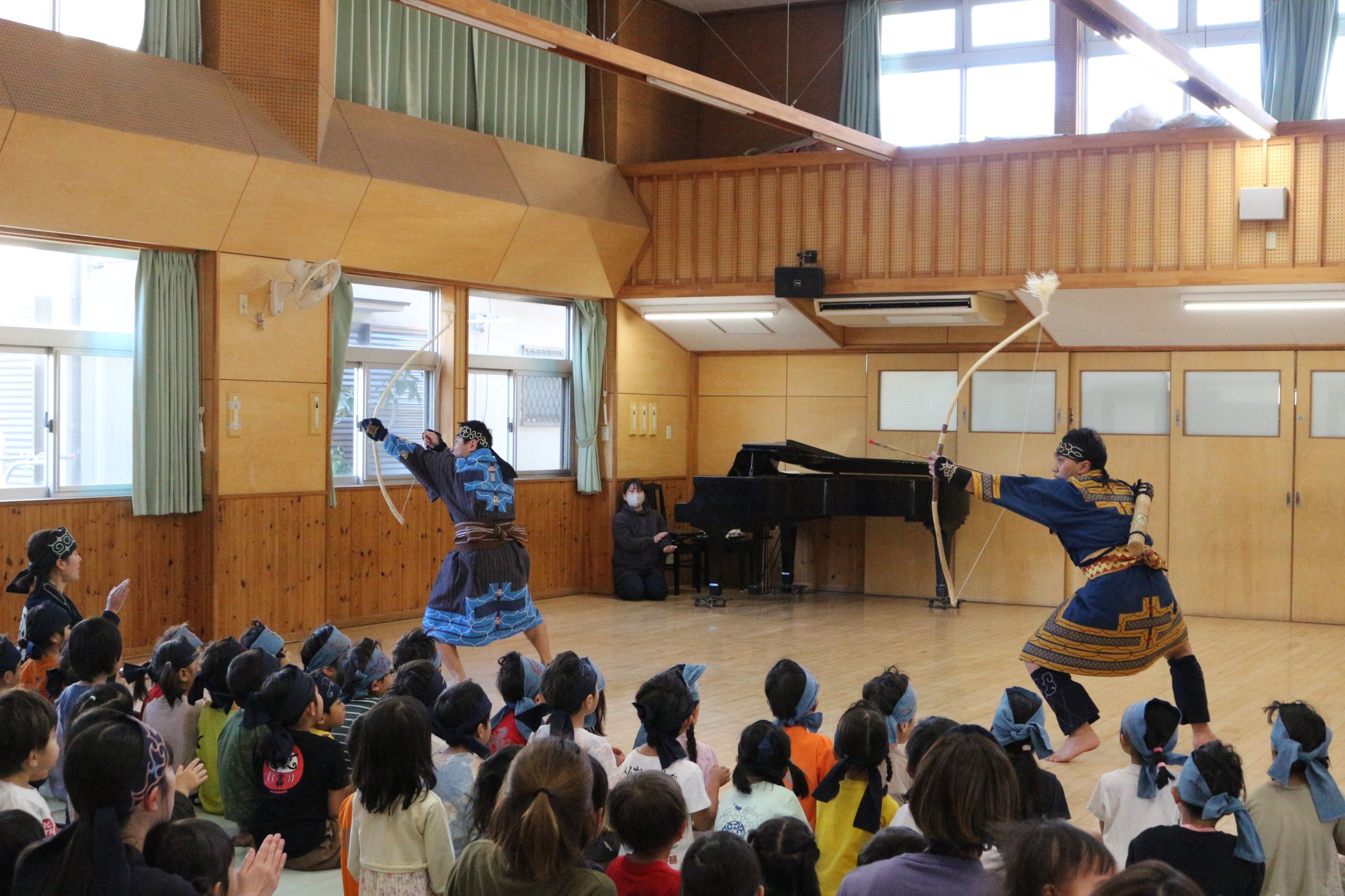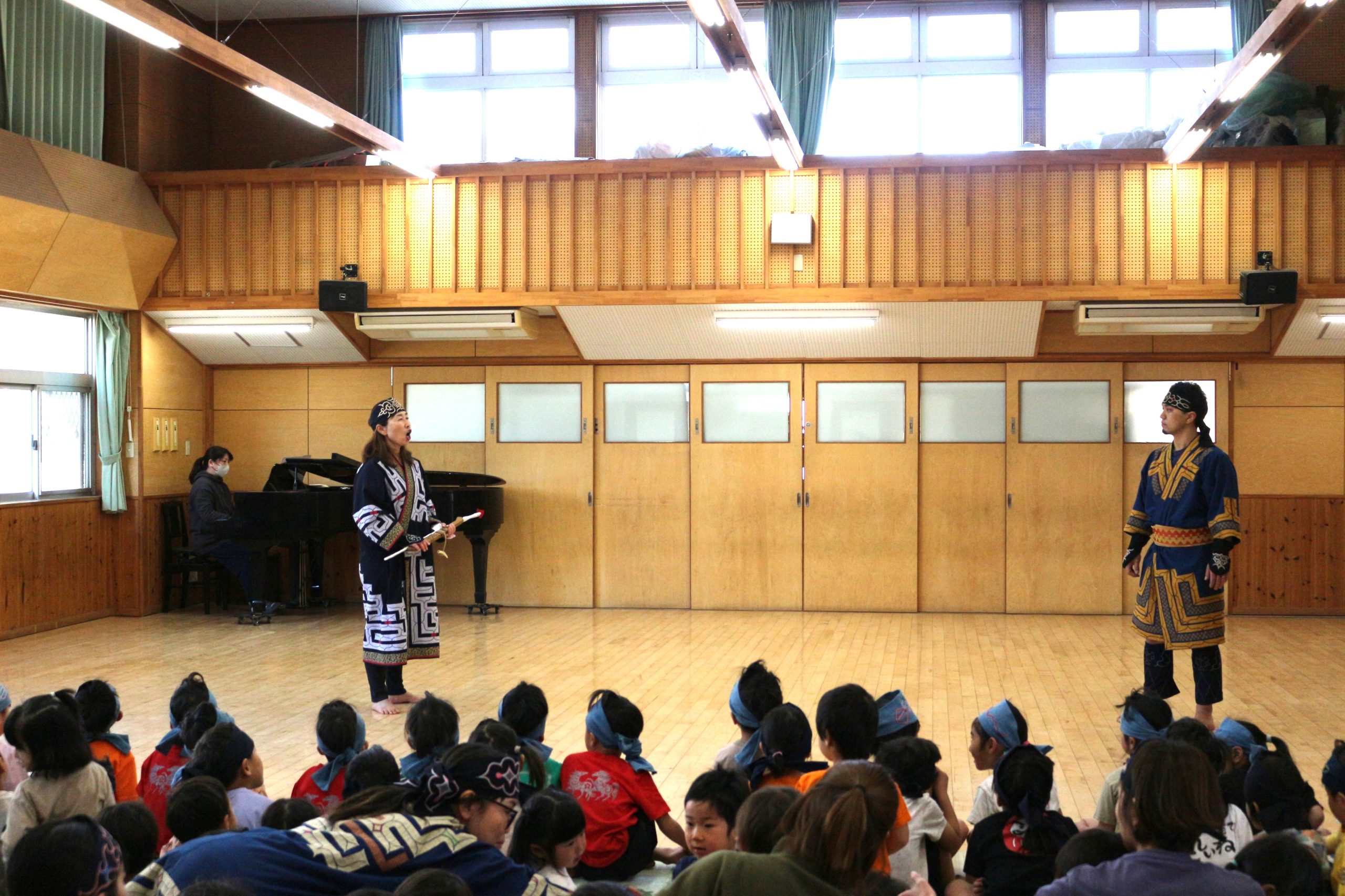 オキクルミ会 今日はホールに0歳~5歳まで集まり、オキクルミ会をしました。 川鳥とオキクルミ アメマスごっこ オキクルミがアメマスと戦うところ 弓のおどり 子どもたちの弓のおどり オキクルミと姉 オキクルミと悪魔 今日はたくさん歌って踊って みんなでオキクルミ会を楽しみました(⌒∇⌒)