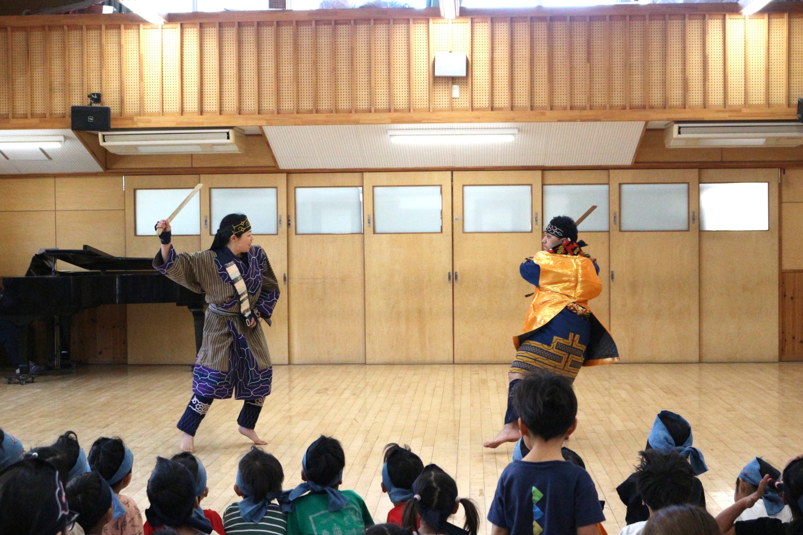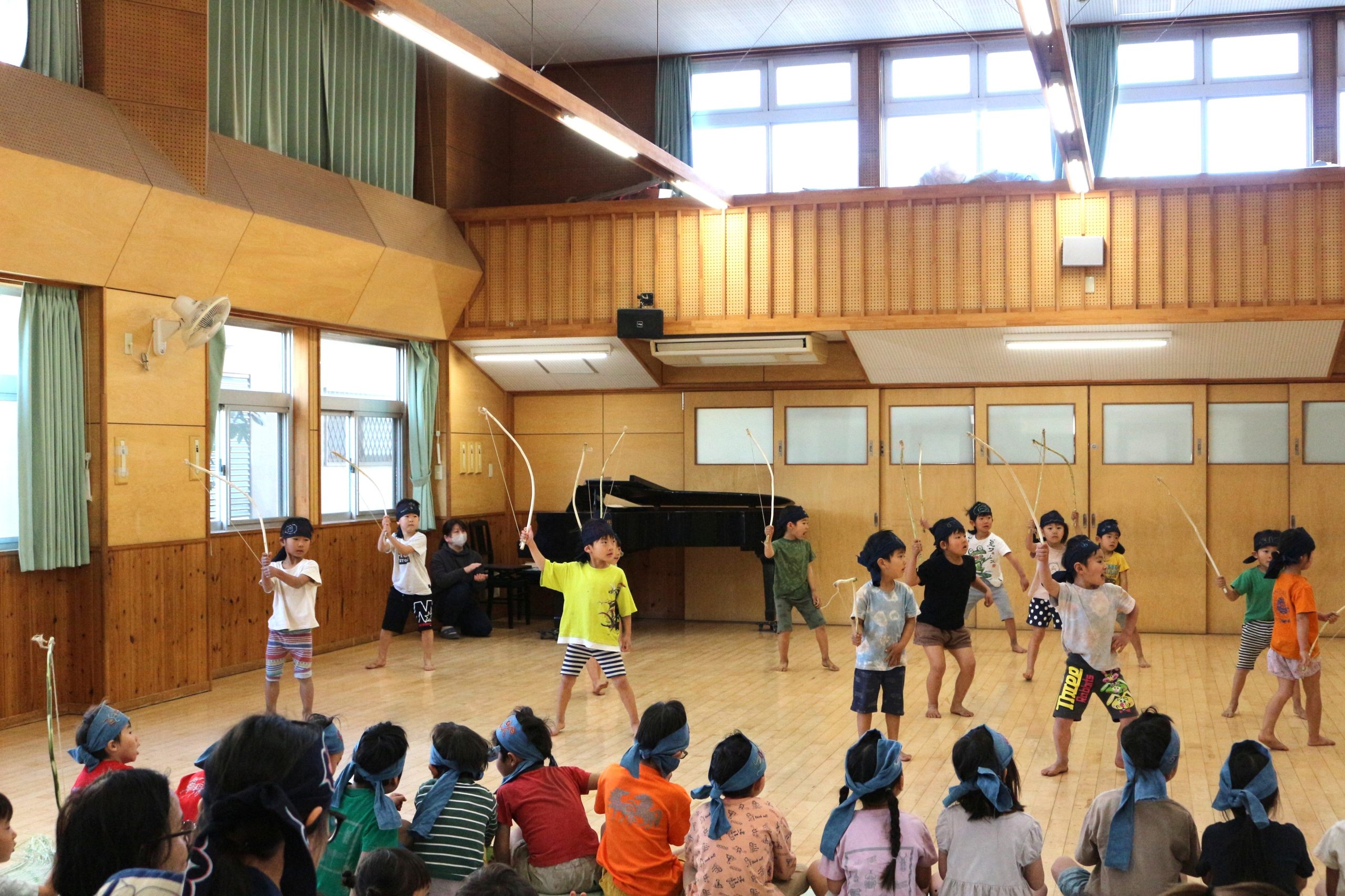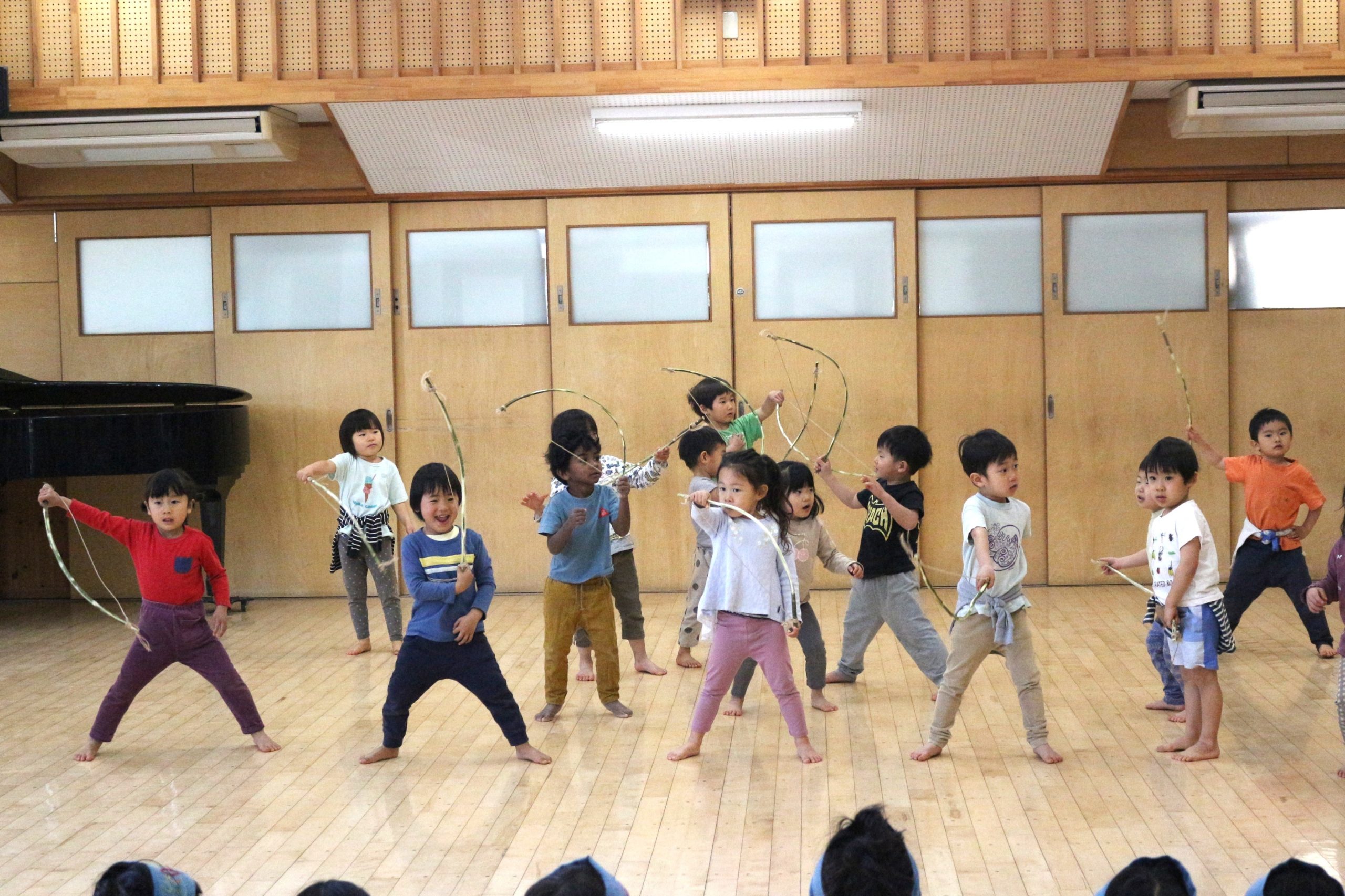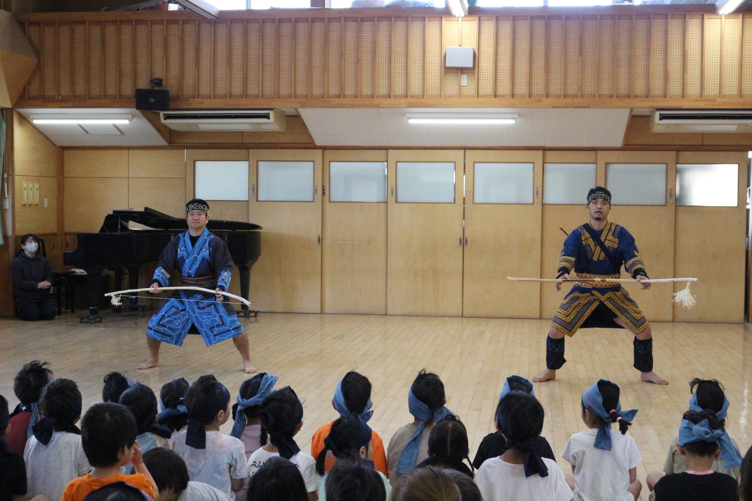 オキクルミ会 今日はホールに0歳~5歳まで集まり、オキクルミ会をしました。 川鳥とオキクルミ アメマスごっこ オキクルミがアメマスと戦うところ 弓のおどり 子どもたちの弓のおどり オキクルミと姉 オキクルミと悪魔 今日はたくさん歌って踊って みんなでオキクルミ会を楽しみました(⌒∇⌒)