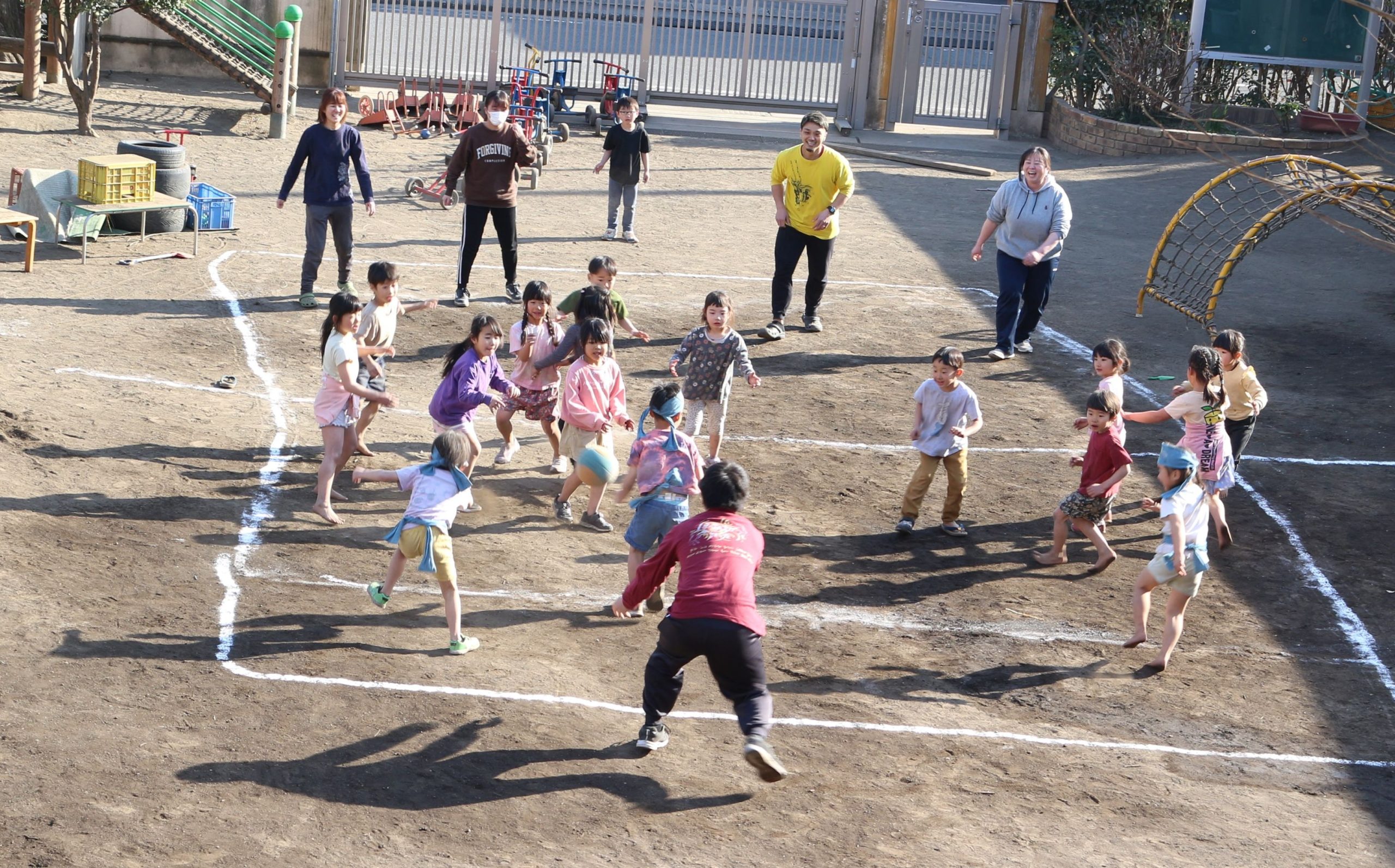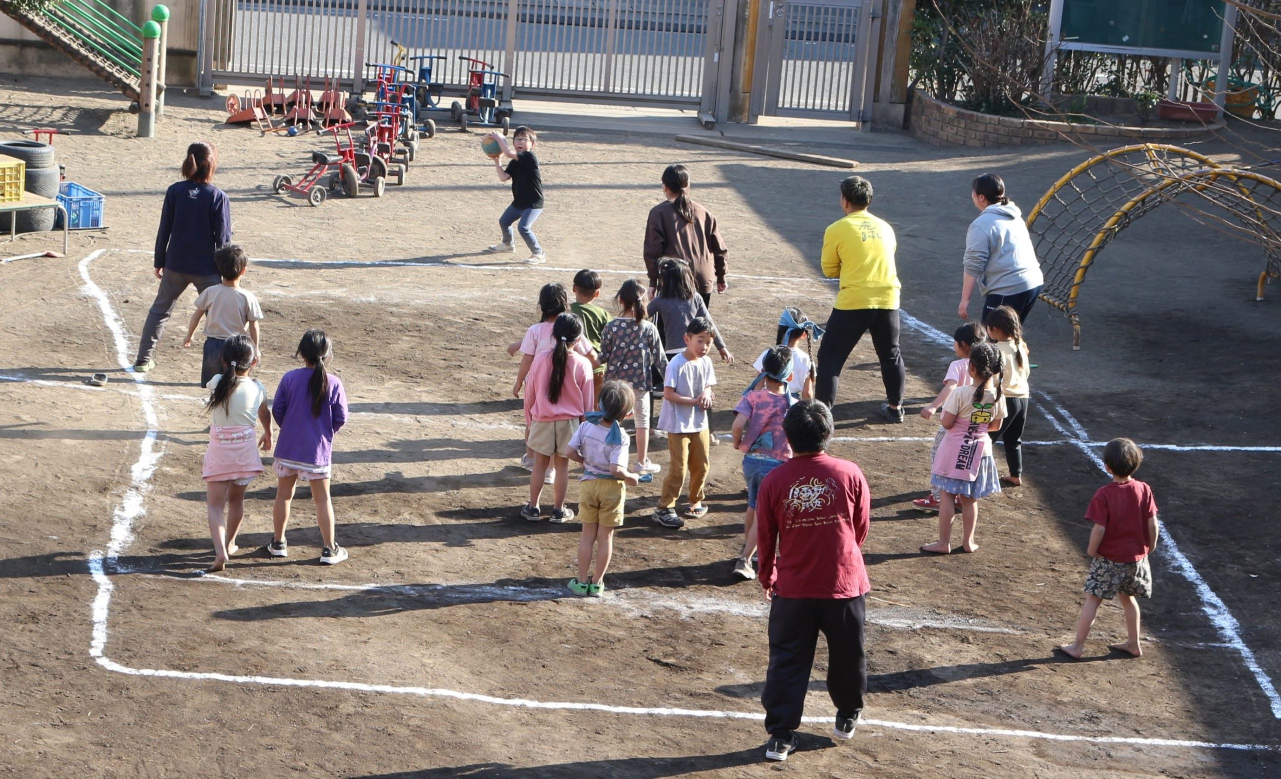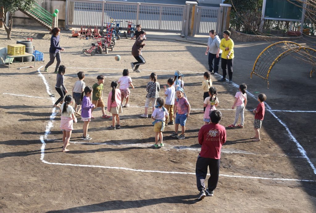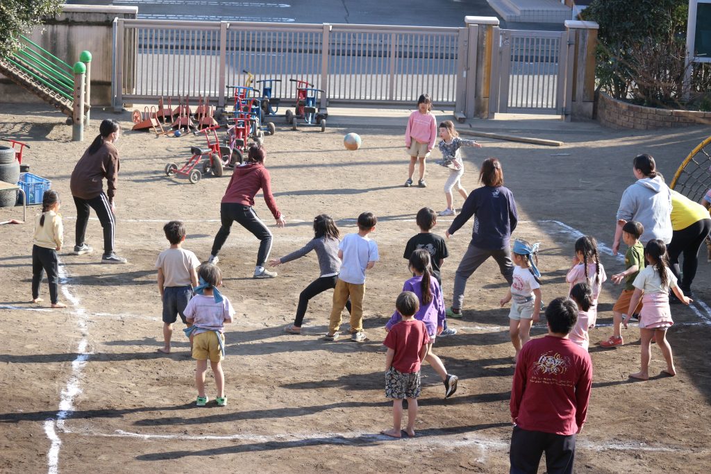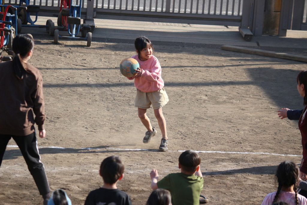 ひまわり組(5歳児)の子どもたち VS 大人のドッジボール大会が開催されました!