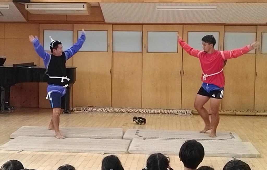 相撲を取る前には鷹の舞を行います。
