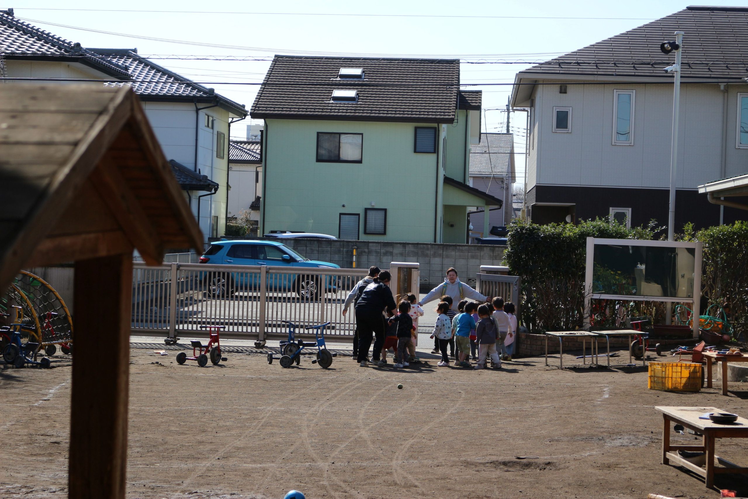 今日は保育園の近くで本当の火事(火災)が起こり、来ていただいた消防士さんも出動となりました