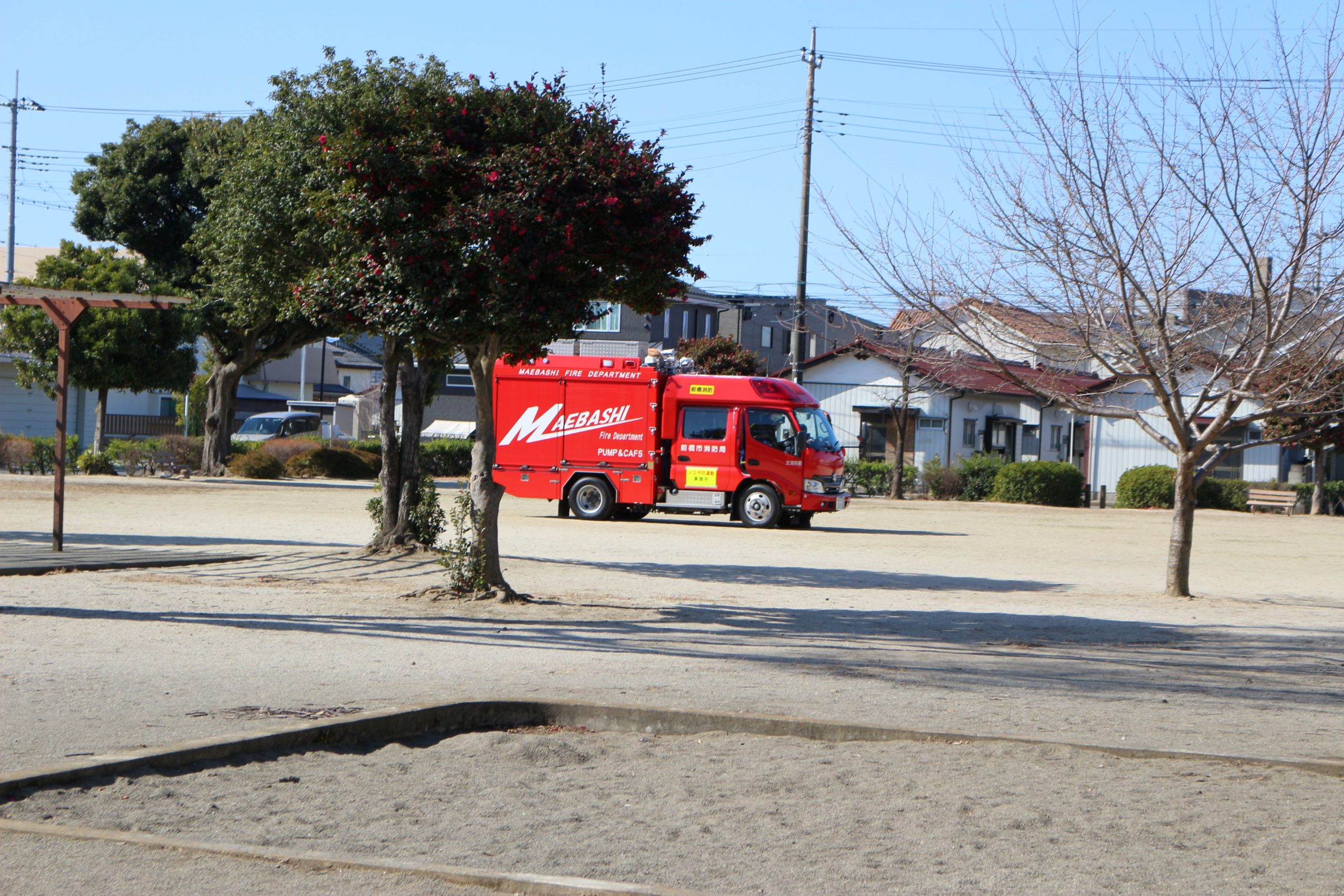 みんな急いで隣の公園に逃げました